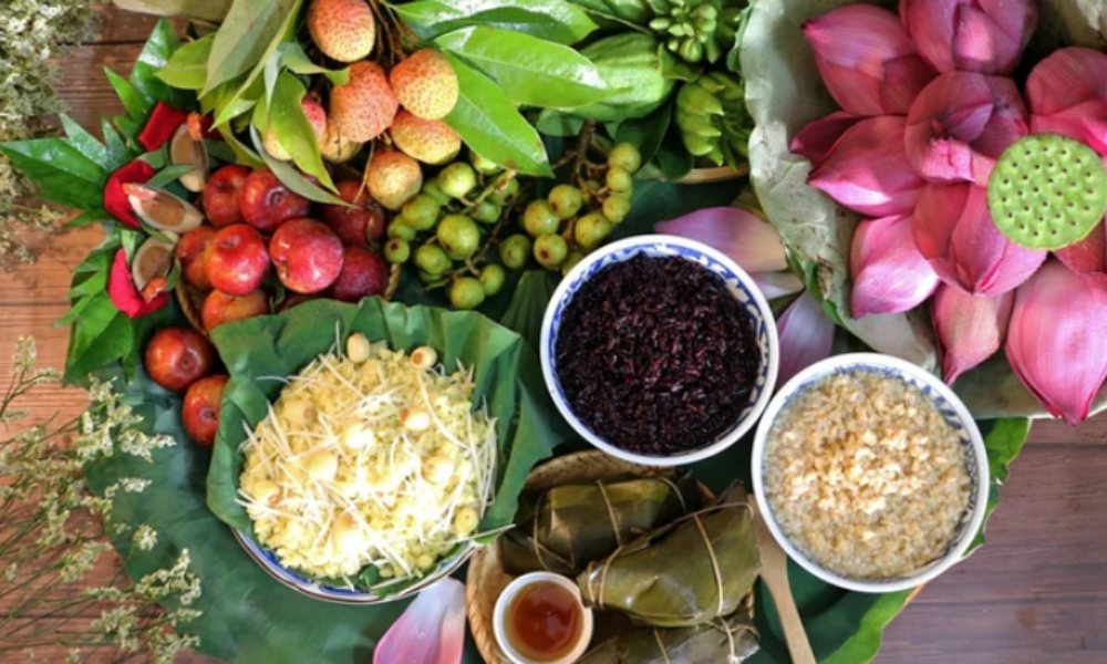 Mâm cúng mùng 1 tháng 6 năm Ất Tỵ (Ảnh: Thu Hương)