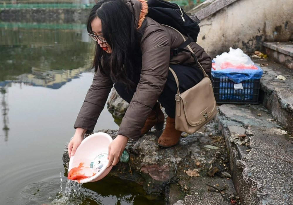 Khi thả, nên nhẹ nhàng đặt cá xuống nước thay vì ném mạnh từ trên cao. Điều này không chỉ giúp cá an toàn mà còn thể hiện sự trân trọng đối với loài vật được xem là phương tiện di chuyển của ông Táo.