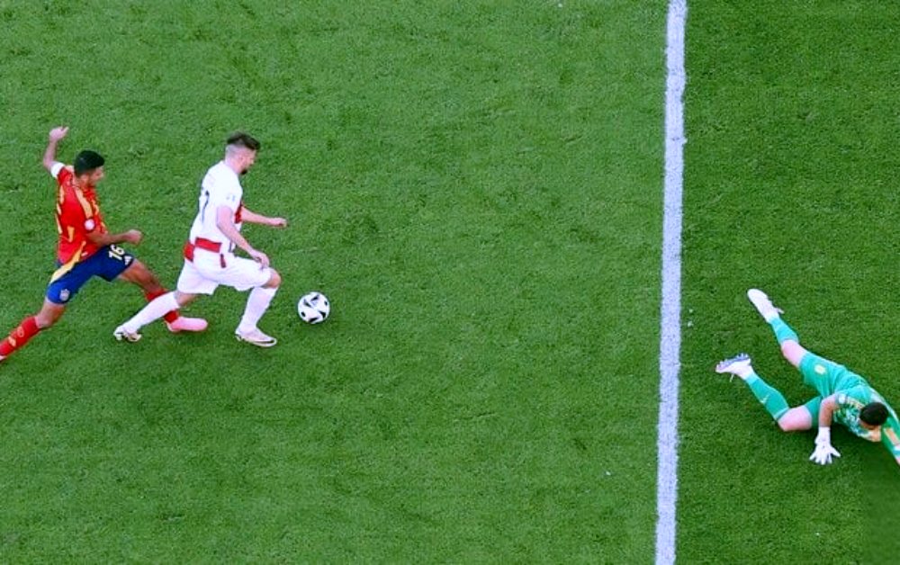 Phút 78, thủ thành Tây Ban Nha chuyền bất cẩn, bóng đến chân Petkovic. Anh không mấy khó khăn vượt qua đối phương, đứng trước cơ hội đưa bóng vào lưới trống. Tuy nhiên, Rodri lao về và phạm lỗi, ngăn cản cầu thủ Croatia ghi bàn.