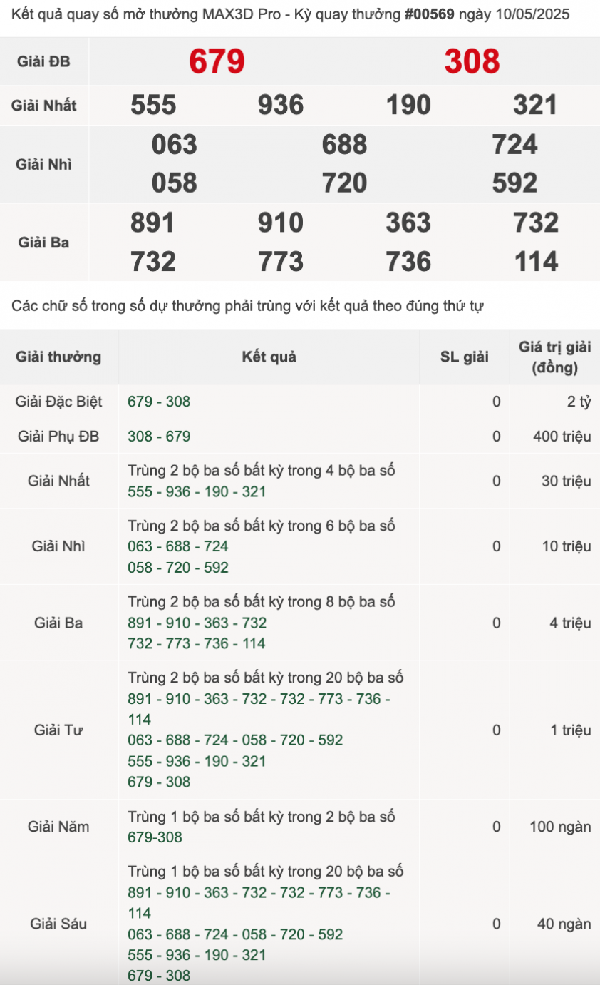 Kết quả Vietlott Max 3D Pro ngày 10/5/2025: