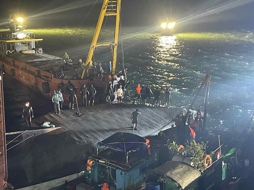 Khoảng 1h30 sáng 20/7, lực lượng chức năng đã lật lại được thân tàu đắm.