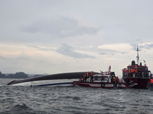 Diễn biến mới nhất vụ tàu lật ở vịnh Hạ Long: Cận cảnh trục vớt tàu lật ở vịnh Hạ Long, phát hiện thi thể mắc kẹt bên trong