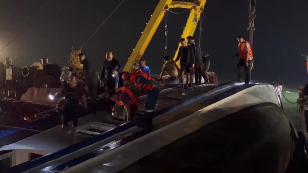 Đúng 0h ngày 20/7, lực lượng chức năng tỉnh Quảng Ninh quyết định lật tàu để tìm kiếm người bị nạn.