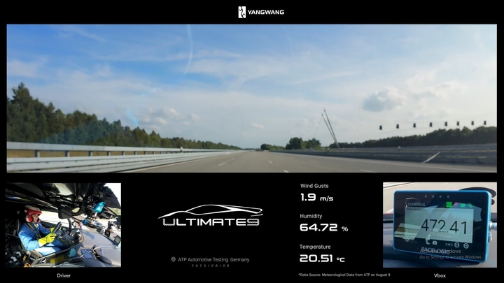 YANGWANG, hãng xe cao cấp do BYD sở hữu, vừa thiết lập kỷ lục tốc độ tối đa toàn cầu mới cho xe thuần điện (EV) với vận tốc 472,41 km/h. Kỷ lục này được xác lập vào ngày 8/8 tại đường thử ATP Automotive Testing Papenburg, Đức.