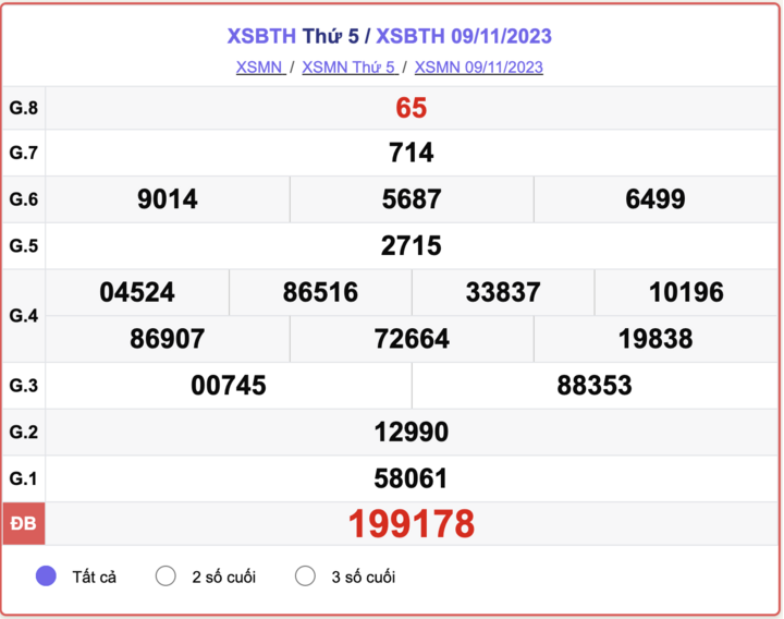 XSBTH thứ 5, kết quả xổ số Bình Thuận hôm nay 9/11/2023