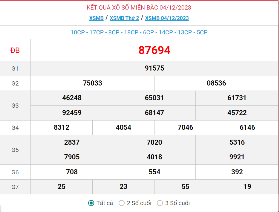 XSMB thứ 2, kết quả xổ số miền Nam ngày 4/12/2023
