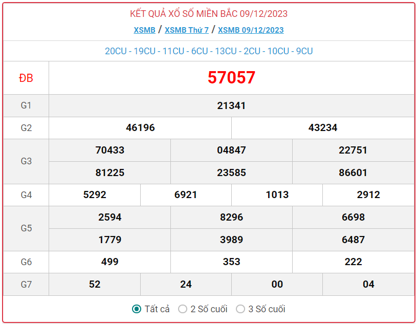 XSMB thứ 7, kết quả xổ số miền Nam ngày 9/12/2023