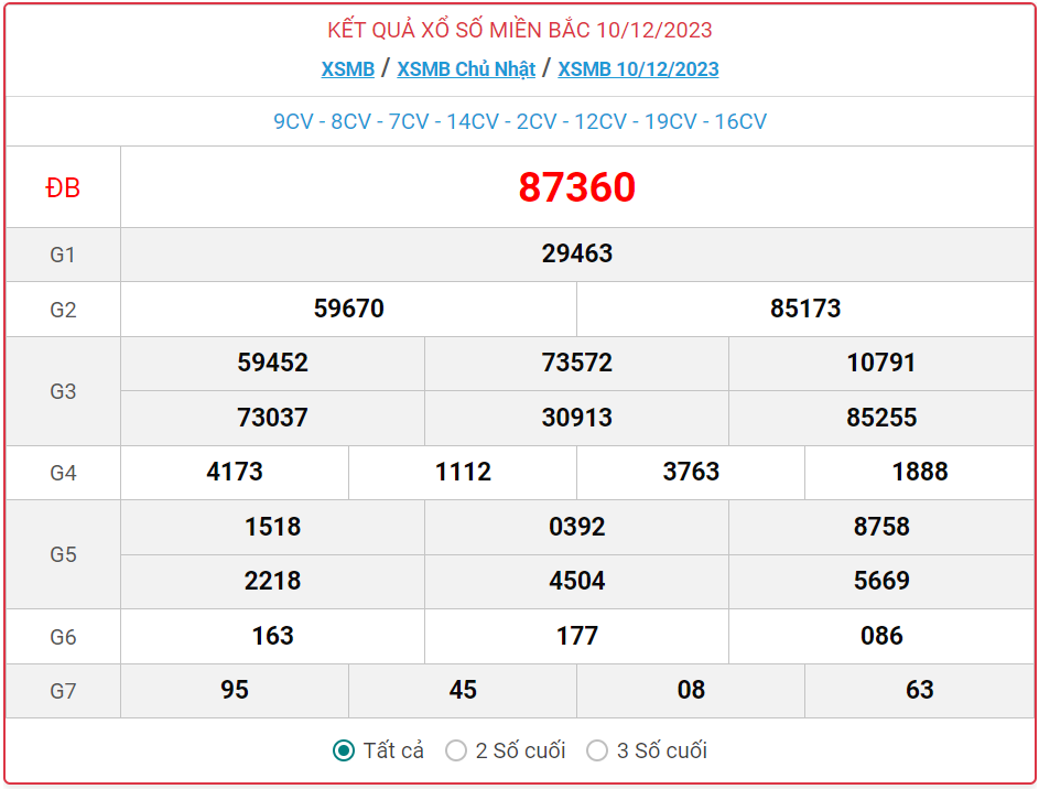 XSMB chủ nhật, kết quả xổ số miền Nam ngày 10/12/2023