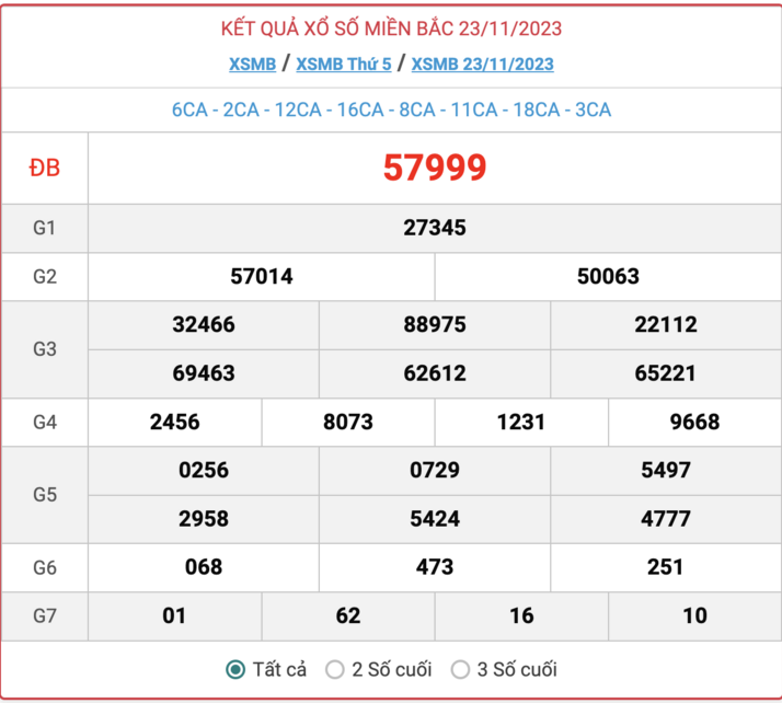 XSMB thứ 5, kết quả xổ số miền Bắc ngày 23/11/2023