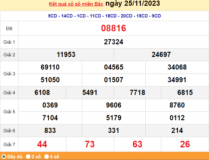 XSMB thứ 7, kết quả xổ số miền Bắc ngày 25/11/2023