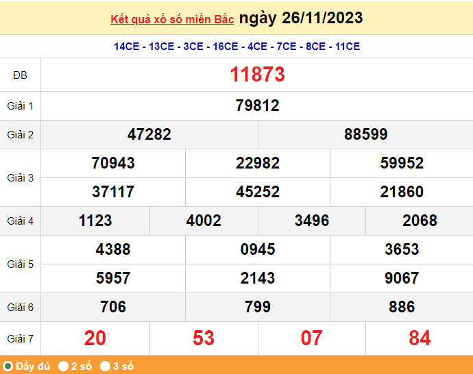 XSMB chủ nhật, kết quả xổ số miền Bắc ngày 26/11/2023