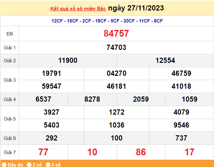 XSMB thứ 2, kết quả xổ số miền Bắc ngày 27/11/2023