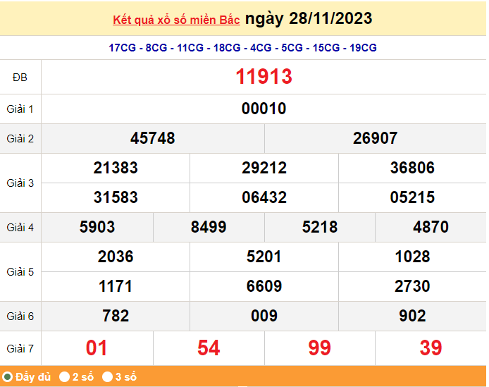 XSMB thứ 4, kết quả xổ số miền Bắc ngày 28/11/2023