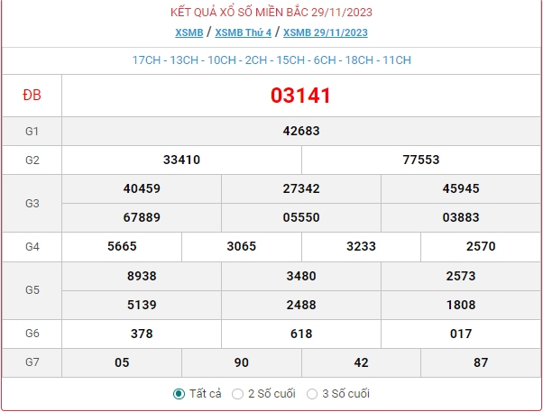 XSMB thứ năm, kết quả xổ số miền Bắc ngày 29/11/2023