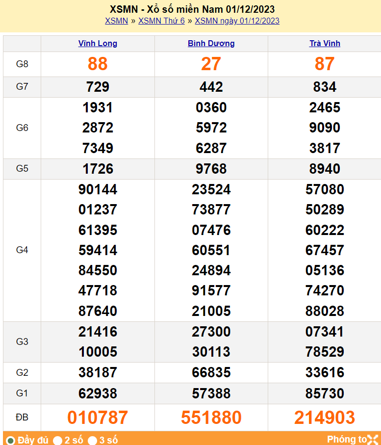 XSMN thứ sáu, kết quả xổ số miền Nam ngày 1/12/2023