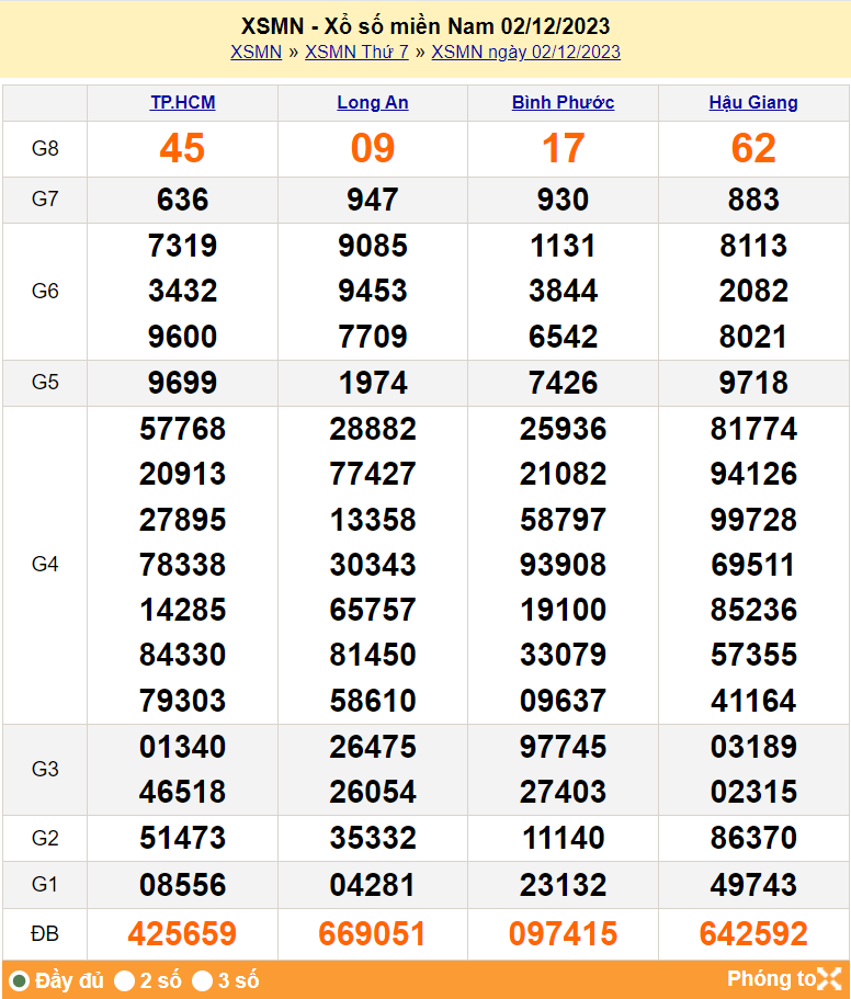 XSMN thứ bảy, kết quả xổ số miền Nam ngày 2/12/2023