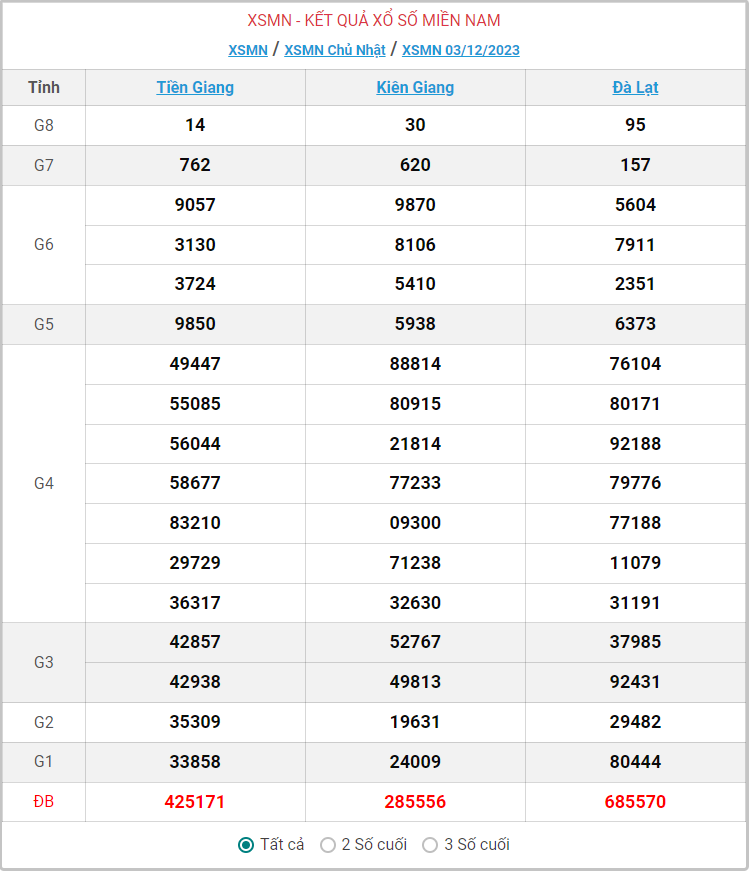 XSMN chủ nhật, kết quả xổ số miền Nam ngày 3/12/2023
