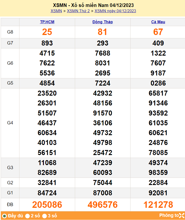 XSMN thứ 2, kết quả xổ số miền Nam ngày 4/12/2023