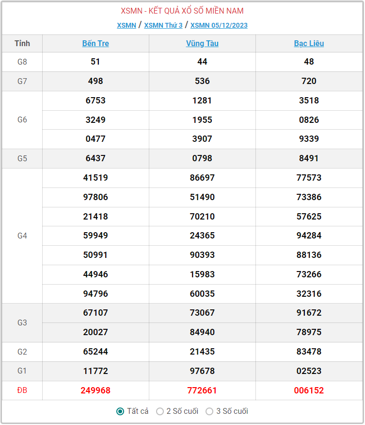 XSMN thứ 3, kết quả xổ số miền Nam ngày 5/12/2023
