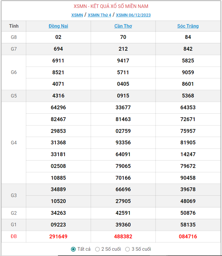 XSMN thứ 4, kết quả xổ số miền Nam ngày 6/12/2023