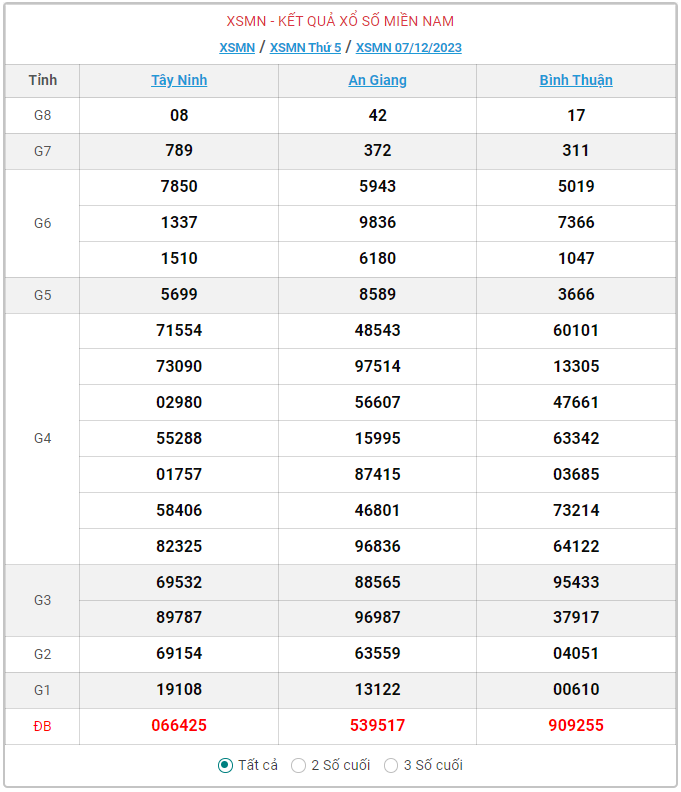 XSMN thứ 5, kết quả xổ số miền Nam ngày 7/12/2023