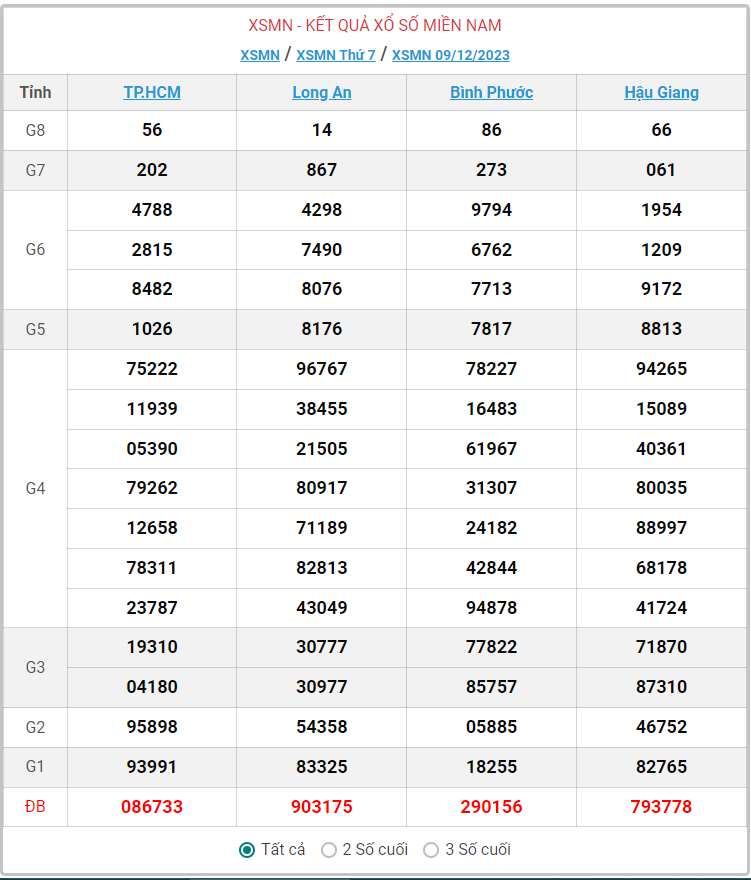 XSMN thứ 7, kết quả xổ số miền Nam ngày 9/12/2023