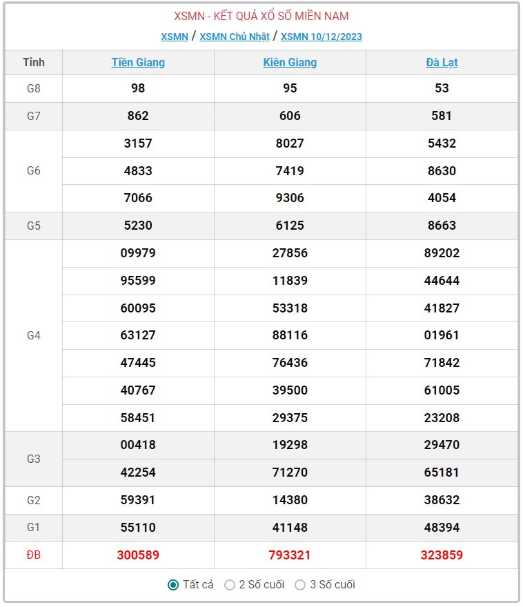 XSMN Chủ nhật, kết quả xổ số miền Nam ngày 10/12/2023