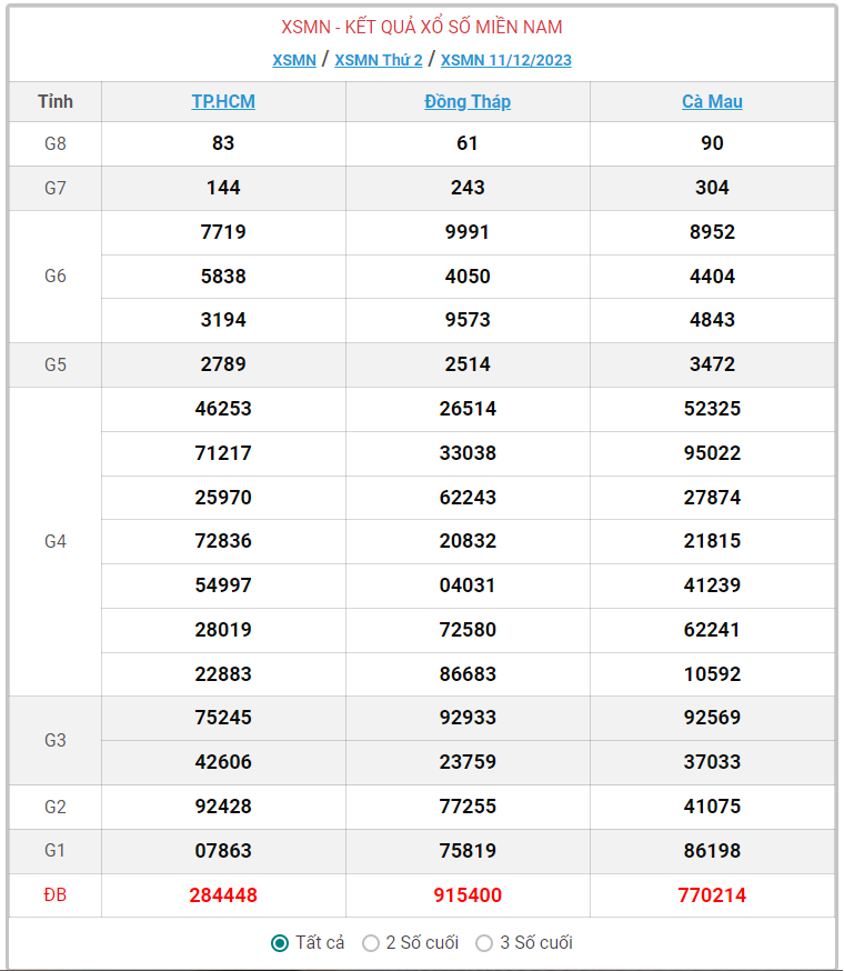 XSMN thứ 2, kết quả xổ số miền Nam ngày 11/12/2023