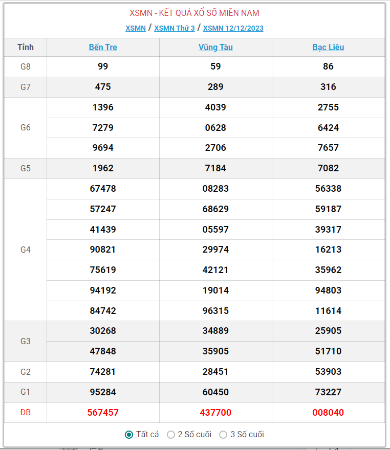 XSMN thứ 3, kết quả xổ số miền Nam ngày 12/12/2023