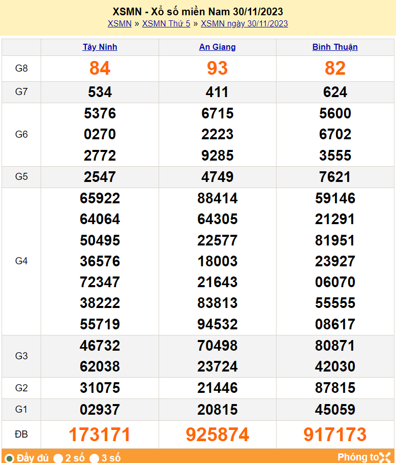 XSMN thứ năm, kết quả xổ số miền Nam ngày 30/11/2023