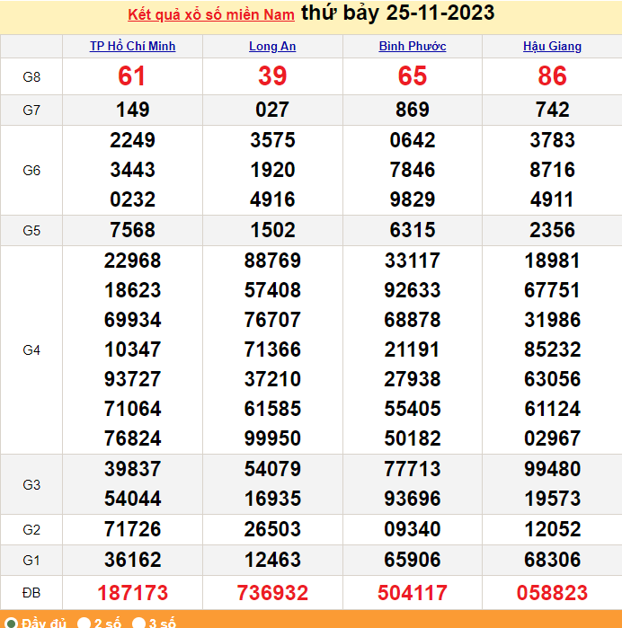 - Kết quả XSMN ngày 25/11/2023