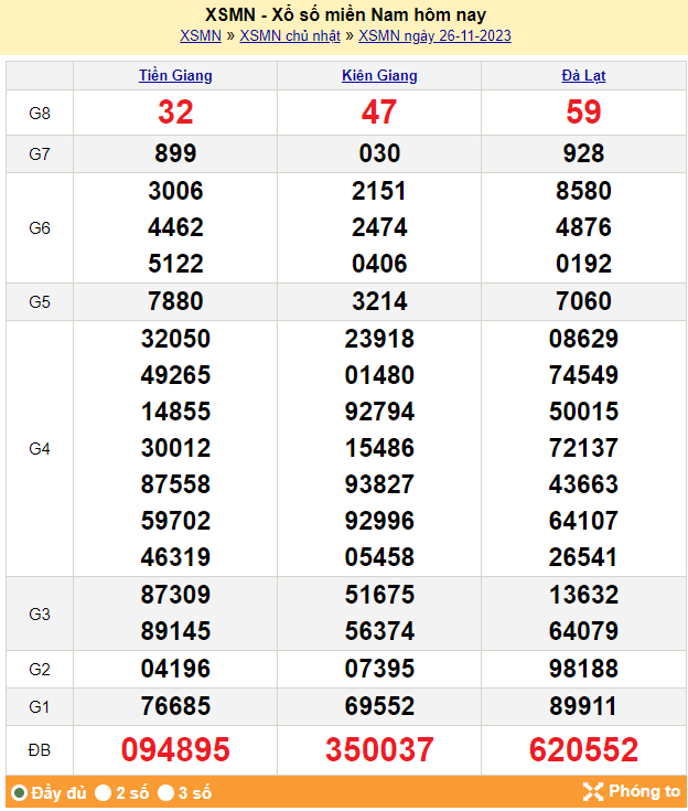 - Kết quả XSMN ngày 26/11/2023