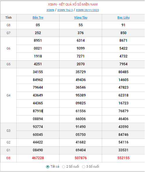 XSMN thứ ba, kết quả xổ số miền Nam ngày 28/11/2023