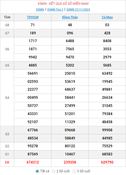 - Kết quả XSMN ngày 27/11/2023