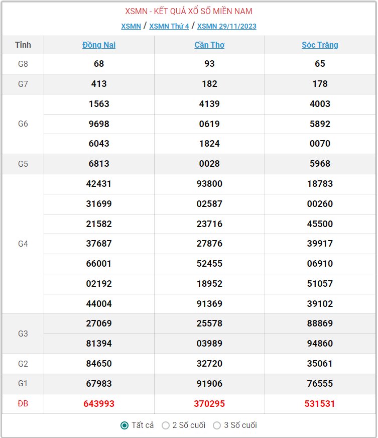 - Kết quả XSMN ngày 3/12/2023