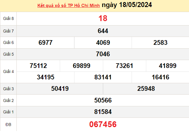 - Kết quả XSHCM ngày 18/5/2024