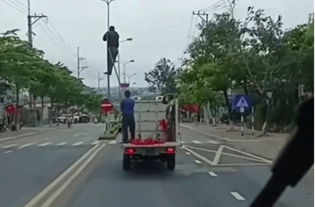Theo nội dung clip, một ô tô tải mang biển số xanh đang di chuyển trên tuyến đường được cho là quốc lộ. Phía sau thùng xe có hai người đàn ông. Một người đứng trong thùng xe, ôm trụ sắt cố định, trong khi người còn lại đu người ra bên ngoài thùng xe, bám vào trụ sắt với tư thế chênh vênh, giống như đang “làm xiếc”. Hành động này khiến nhiều người xem lo ngại vì tiềm ẩn nguy cơ mất an toàn giao thông.