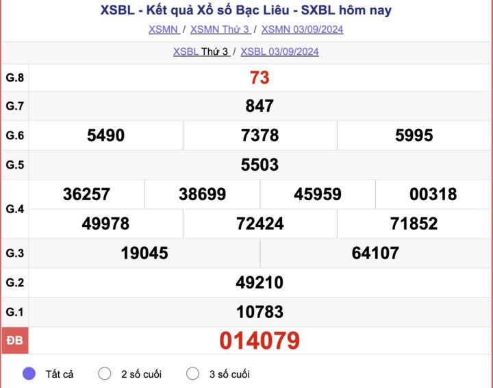 Trực tiếp Kết quả xổ số Bạc Liêu hôm nay - Kết quả XSBL 10/9 - XSBL hôm nay Thứ Ba ngày 10/9/2024.