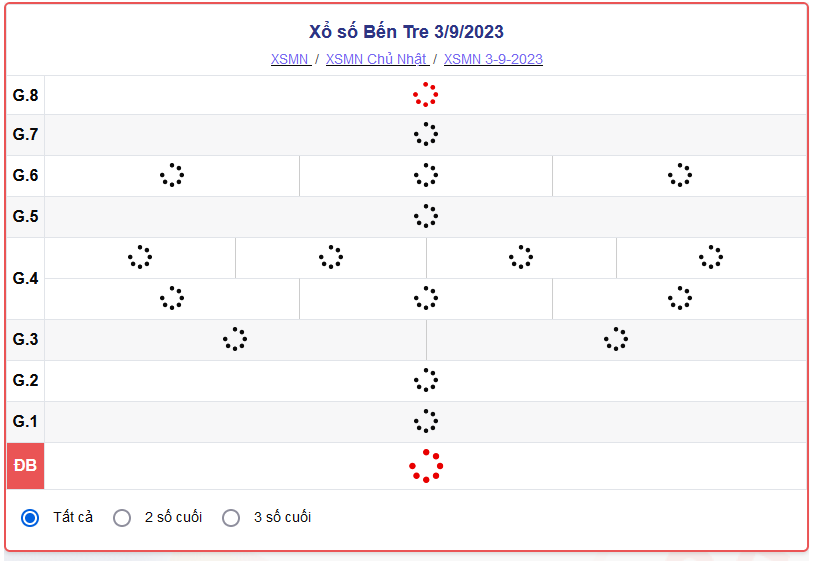 Xem lại kết quả xổ số Bến Tre các kỳ quay gần nhất