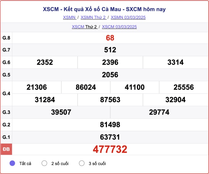 Trực tiếp Kết quả xổ số Cà Mau hôm nay - Kết quả XSCM 10/3 - XSCM hôm nay Thứ Hai ngày 10/3/2025.