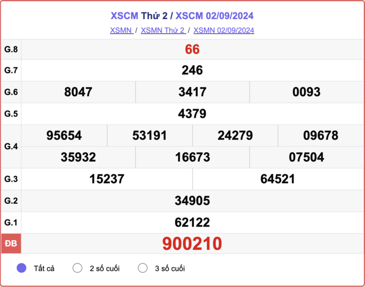 - Thứ hai là ngày xsmn sẽ mở thưởng tại Đồng Tháp, TP.HCM, Cà Mau.