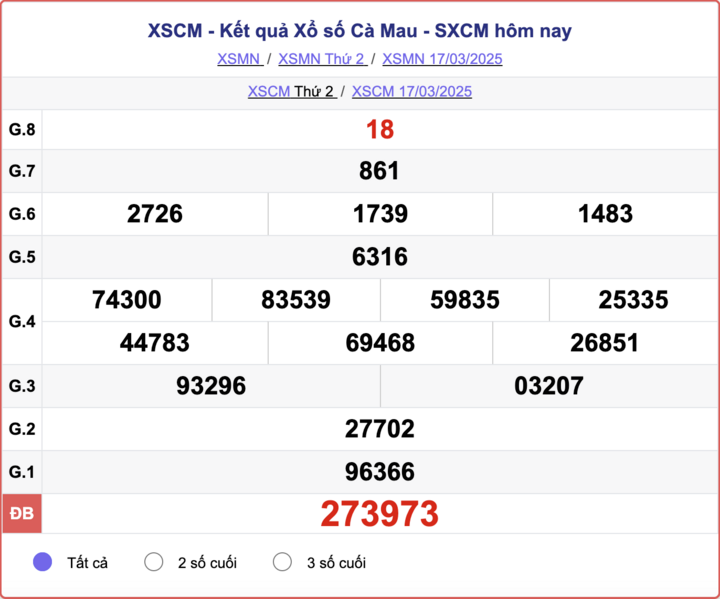 Trực tiếp Kết quả xổ số Cà Mau hôm nay - Kết quả XSCM 7/4 - XSCM hôm nay Thứ Hai ngày 7/4/2025