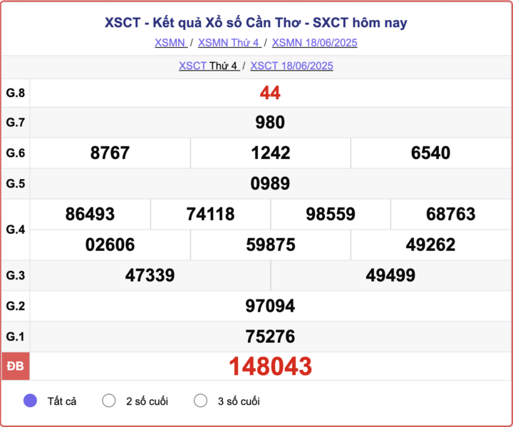 Trực tiếp Kết quả xổ số Cần Thơ hôm nay - Kết quả XSCT 25/6 - XSCT hôm nay Thứ Tư ngày 25/6/2025