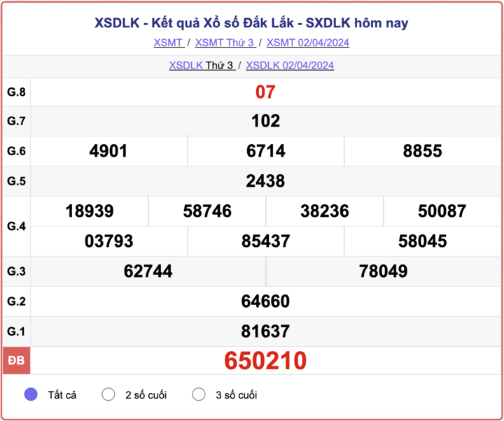 - Kết quả XSDLK ngày 2/4/2024
