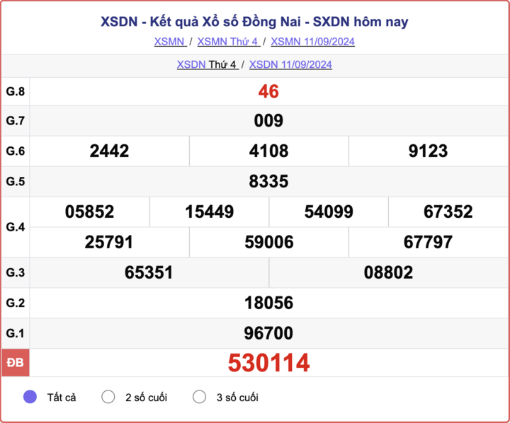- KQXS Đồng Nai 11/9/2024