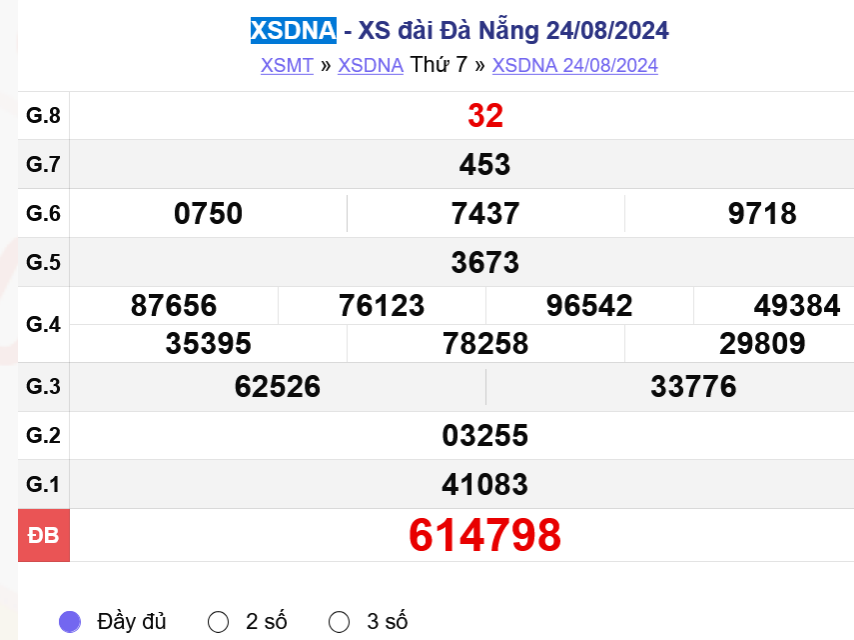 Xem lại Kết quả xổ số Đà Nẵng Thứ Tư ngày 24/8/2024:
