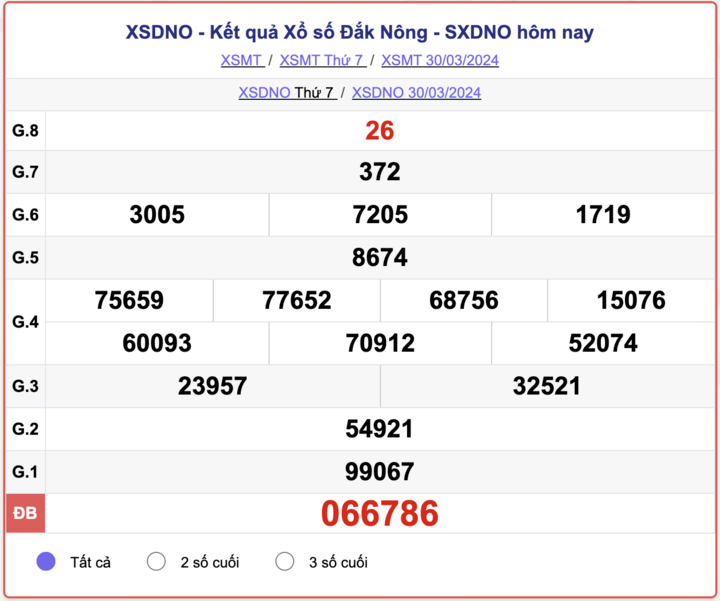 - Kết quả XSDNO ngày 30/3/2024