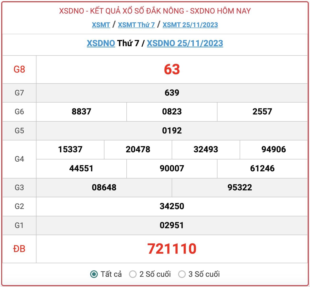XSDNO thứ 7, kết quả xổ số Đắk Nông ngày 25/11/2023