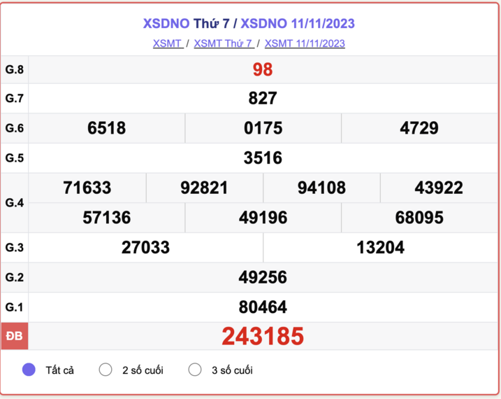 Xem tiếp kết quả XSDNO các kỳ mở thưởng trước