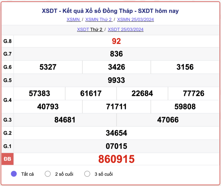 XSDT 1/4. Kết quả xổ số Đồng Tháp hôm nay - XSDT thứ Hai ngày 1/4/2024 sẽ được cập nhật nhanh chóng và chính xác nhất trên phuongtruongan.vn. Kết quả các giải thưởng của XSDT ngày 1/4/2024 sẽ được công bố lần lượt từ giải nhất đến giải tám, cuối cùng là giải đặc biệt.